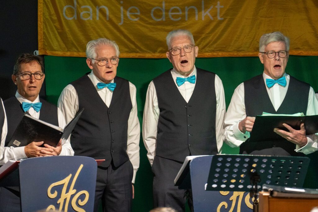 20 mannen die zich toeleggen op het vierstemmig zingen van liederen, deels a capella en deels met pianobegeleiding.